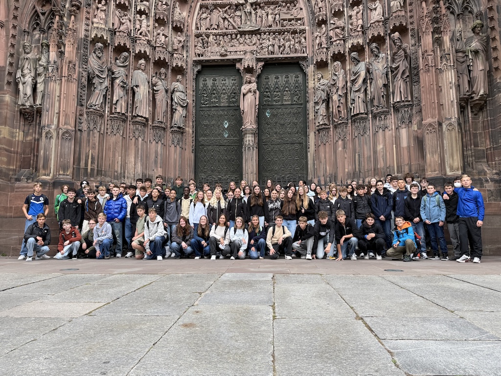 Einen abwechslungsreichen und gemeinschaftlichen Tag verbrachten die Schülerinnen und Schüler der vier neunten Klassen des Stromberg-Gymnasiums Ende September bei angenehmen Temperaturen im schönen Straßburg. Nach der Ankunft stand zunächst ein kurzer Besuch im Straßburger Münster auf dem Programm, wo die Vaihinger Gymnasiasten vor allem die bunten Glasfenster sowie die einzigartige astronomische Uhr beeindruckte.