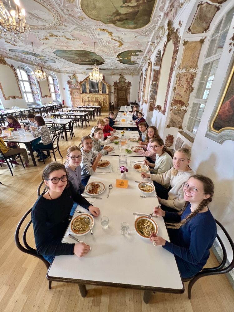 Ein inspirierender Auftakt in ihre Probentage war gleich nach der Anreise der gemeinsame Besuch der Klosterkirche, die mit ihren wunderschönen barocken Deckengemälden und der berühmten Gabler-Orgel alle Teilnehmenden sichtlich beeindruckte.