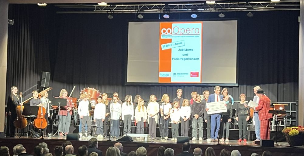 Was führt an einem sonnigen Sonntagnachmittag im Herbst Schülerinnen und Schüler von der Unterstufe bis hin zu Ehemaligen, Lehrkräfte, Eltern sowie die Schulleiterin einer Schule zusammen? Die Musik ist es, die hier einmal mehr eine verbindende Kraft bildet und Anlass für ein generationsübergreifendes Miteinander ist. Im extra gecharterten Reisebus machten sich so Mitte Oktober über 30 Mitwirkende des Friedenskonzerts„Concert de la paix“, das am 8. Mai anlässlich des 80jährigen Endes des Zweiten Weltkriegs in der Vaihinger Stadtkirche stattgefunden hatte, aus dem Vaihinger Nebenweg auf in Richtung Korntal-Münchingen, wo sie als Preisträger zum Jubiläumskonzert des alle zwei Jahre ausgelobten coOpera-Wettbewerbs eingeladen worden waren. Gefeiert wurden in diesem Jahr nicht nur die Preisträger, sondern auch das 25-jährige Bestehen des Wettbewerbs.