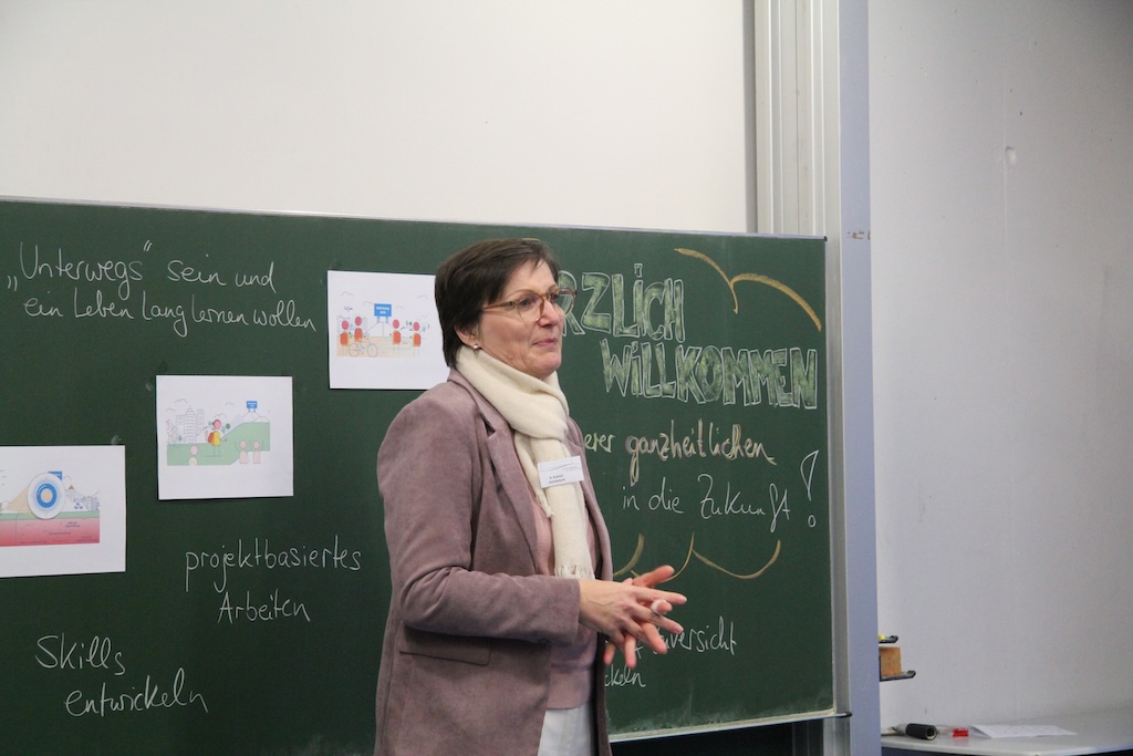 An einer der Stationen erklärte die Schulleiterin, wie sich der Bildungsgang am Stromberg-Gymnasium versteht: als „ganzheitliche Lernreise mit Kopf, Herz und Hand“. Denn, so Kranich: „Die heutige Zeit erfordert, dass wir uns permanent an neue Bedingungen anpassen.“ Die Pädagogik am Stromberg-Gymnasium helfe den Schülerinnen und Schülern, neben dem Erwerb von Fachwissen die dafür notwendigen „Skills“ auszubilden. Dazu gehöre, „mit anderen gemeinsam Ideen zu entwickeln und in sich widersprüchliche Dinge zusammendenken zu können, um sein Leben mit Zuversicht anzugehen.“
