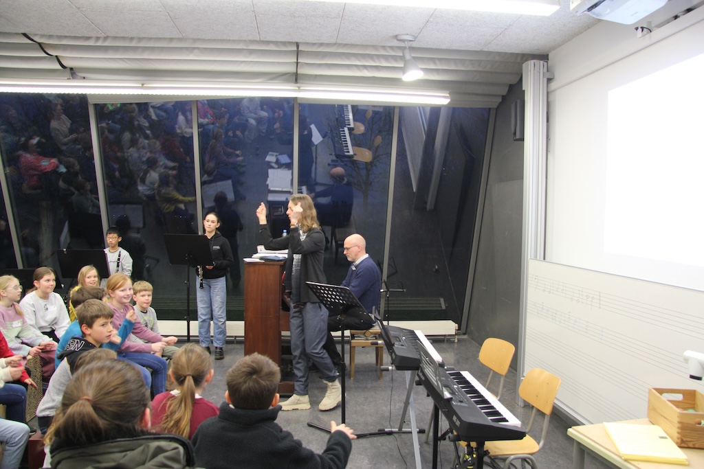 Wer sich am liebsten in der Sprache der Musik ausdrückt, findet am Stromberg-Gymnasium ebenfalls das passende Angebot, etwa im Singtreff der Klassenstufen 5 und 6 oder im Chor conTakt ab Klassenstufe 7, einem Kooperationschor der Jugendmusikschule Vaihingen und des Stromberg-Gymnasiums. Auch Orchester und Big Band freuen sich über neue Mitwirkende. Eine Kostprobe aus dem Musikunterricht erhielten Eltern und Kinder, als sie an der Musikstation in „The Lion Sleeps Tonight“ einstimmen durften, unterstützt von zwei Musiklehrkräften sowie von Instrumentalistinnen und Instrumentalisten aus unterschiedlichen Klassenstufen.