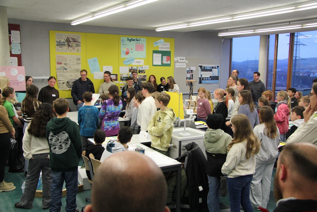 Unterstützt wird selbstverständlich auch, wer auf seiner ganzheitlichen Lernreise feststellt, dass die eigenen Stärken im naturwissenschaftlichen Bereich liegen: Etwa in Klassenstufe fünf in der MINT-AG, wo Legoroboter oder Mbots programmiert oder Objekte mit dem 3D-Drucker hergestellt werden. In Klassenstufe acht kommt in Naturwissenschaft und Technik (NwT) der Junior.ING-Wettbewerb der Ingenieurkammer Baden-Württemberg hinzu. Auch die höheren Klassenstufen halten attraktive Angebote bereit, wovon sich die Besucherinnen und Besucher der MINT-Station überzeugen konnten.