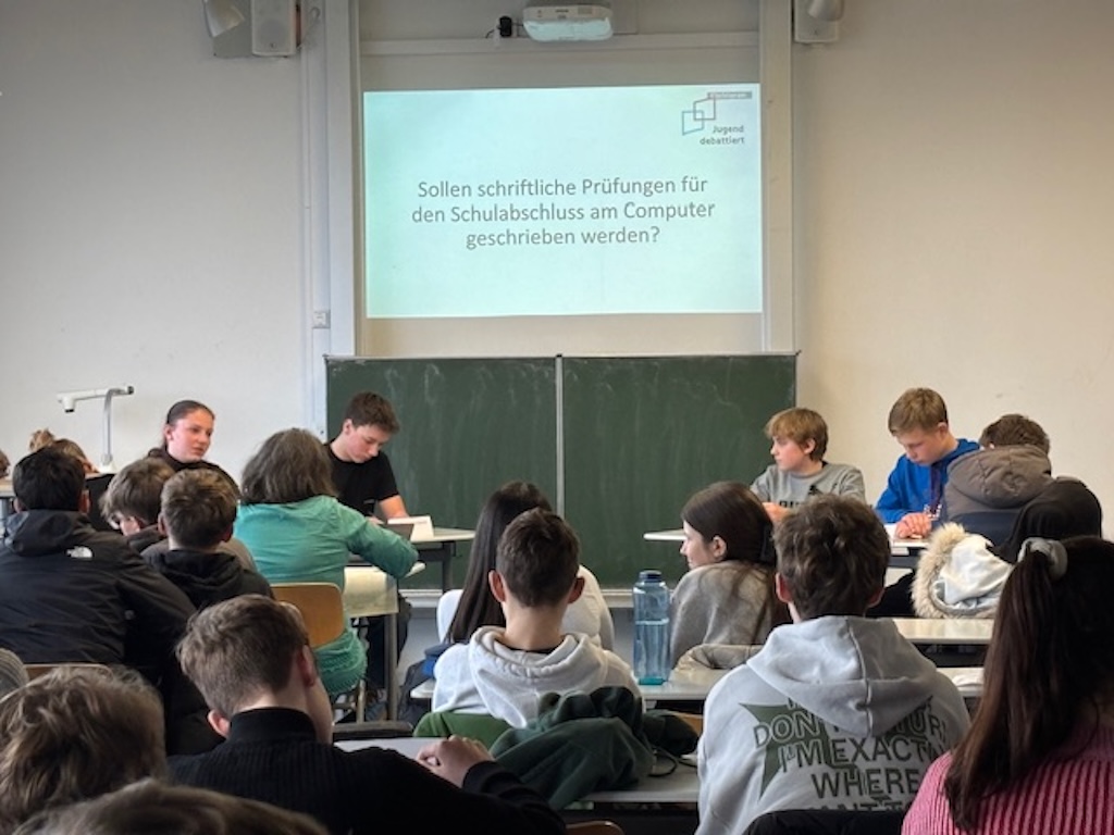 In den vergangenen Wochen verwandelte sich der Deutschunterricht der 9. Klassen in eine echte Debattenwerkstatt: Die Schülerinnen und Schüler bereiteten sich intensiv auf das bundesweite Wettbewerbsformat Jugend debattiert vor, das seit Jahren für gelebte Demokratiebildung steht. Ziel ist es, kontroverse gesellschaftliche Fragen sachlich fundiert, überzeugend und respektvoll zu diskutieren – eine Schlüsselkompetenz weit über die Schule hinaus.