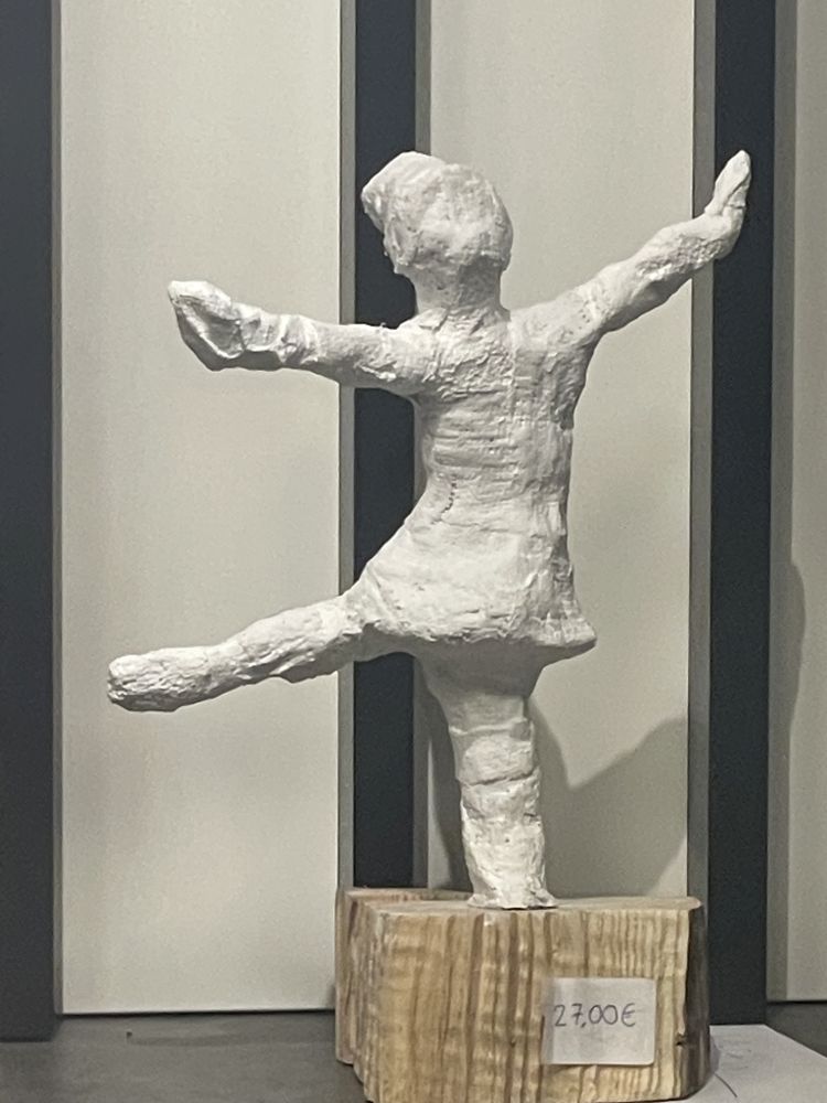 Besonderen Grund zur Freude gibt es am Abend der Vernissage dann noch für Eva. Sie habe ursprünglich eine Cheerleaderin modellieren wollen, das sei dann aber doch zu kompliziert gewesen. Schließlich sei eine Ballerina daraus geworden. Die Verkaufschancen hat das nicht beeinträchtigt: Die Figur ging für 27 Euro über den Ladentisch der Sportabteilung. Was Eva mit dem Geld vorhat? „Ich spar’s wahrscheinlich.“