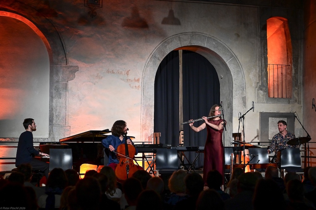 Maßgeblich trugen hierzu die sowohl künstlerische als auch pädagogische Professionalität und die Begeisterungsfähigkeit der vier Soundrise-MusikerInnen Stephanie Lepp (Querflöte und Bansuri), Levan Andria (Violoncello), Marko Mrdja (Klavier) und Kurt Fuhrmann (Schlagzeug) bei, für die Improvisation auch in ihrem eigenen künstlerischen Schaffen einen hohen Stellenwert einnimmt. Egal ob bei ganz freiem Improvisieren oder dem kreativen Mitgestalten von Kompositionen aus der Feder des Soudrise Quartets wie „Wellen“, „Wolkenflug“ oder „Taubenruf“ – die eigene Fantasie einerseits, gutes Zuhören und ein Gefühl für die Gruppe andererseits waren stets gefragt.